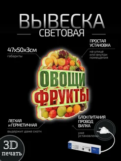 Световая вывеска "Овощи-Фрукты", объемные буквы