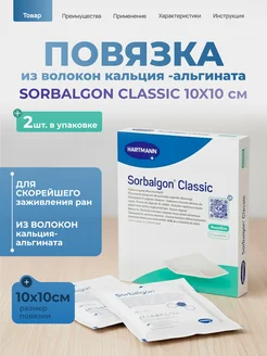 Сорбалгон повязка из нитей кальция-альгината, 10x10 см 2 шт