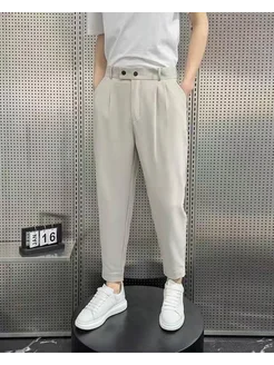 Брюки классические на резинке бананы прямые зауженные