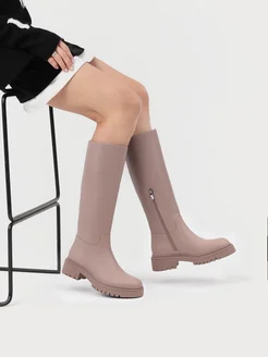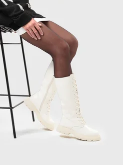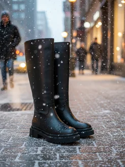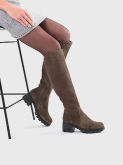 Ботфорты зимние с шерстью на каблуке натуральная кожа