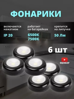 Настенный домашний фонарик в шкаф на батарейках липучке 6шт