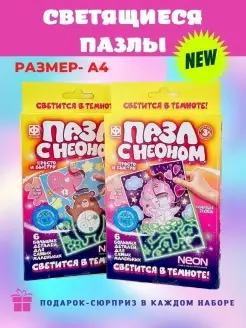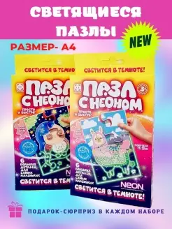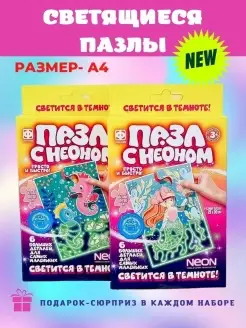 Пазлы для детей с неоном+подарок