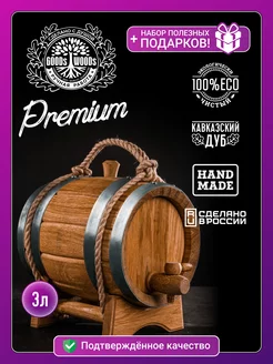 Дубовая бочка 3л Профессиональный бочонок PREMIUM качества
