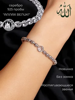 Браслет мусульманский серебро 925 с мечетью и полумесяцем