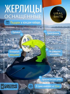 набор оснащенных жерлиц 10 шт, на осторожную щуку, судака