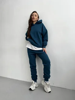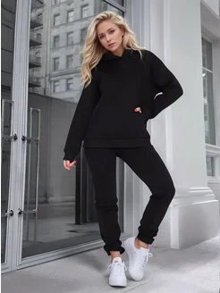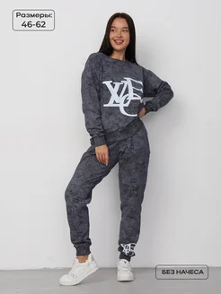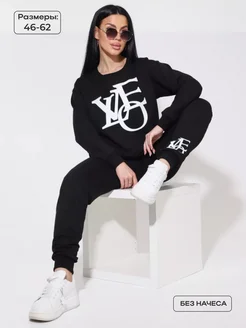 Костюм спортивный трикотажный с принтом, без начёса, чёрный