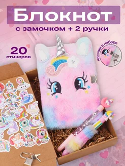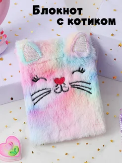 Подарок девочке пушистый меховой блокнот с замком и ручками
