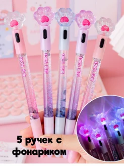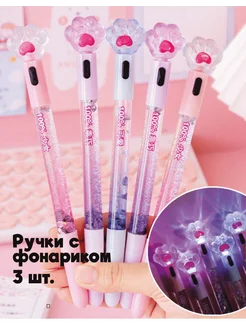 Набор ручек для девочек с лапкой котика и фонариком