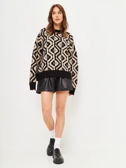 Свитер оверсайз с принтом теплый вязаный шерсть