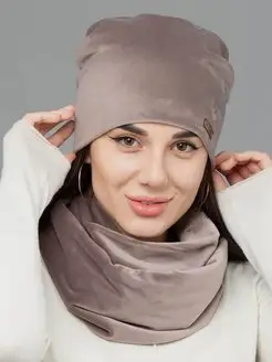 Комплект шапка лопата и снуд осенняя зимняя велюровая