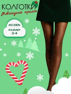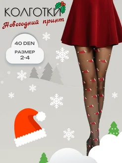 Колготки капроновые новогодний принт (колпачки), 40 den