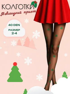 Колготки капроновые новогодний принт (ёлочки), 40 den