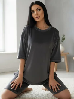 Футболка ОВЕРСАЙЗ однотонная с разрезами по бокам