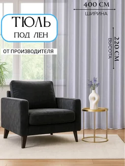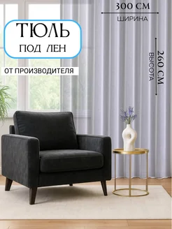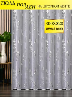 Тюль штора под лен белый 300х220 с утяжелителем в гостиную
