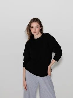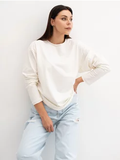 Лонгслив трикотажный из хлопка оверсайз базовый