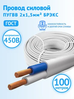 Провод гибкий 100 м ПУГВВ 2х1,5мм² ГОСТ плоский