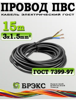 Провод электрический медный ПВС 3х1.5 ГОСТ 15м