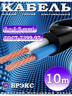 Провод электрический медный ПВС 2х1.5 ГОСТ 10м