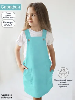 Джинсовый ментоловый сарафан с карманами
