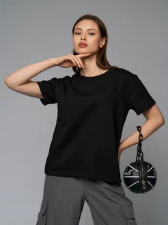 Футболка хлопок плотная оверсайз черная ONE SIZЕ