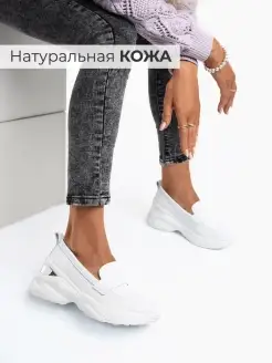 Лоферы белые на танкетке из натуральной кожи слипоны