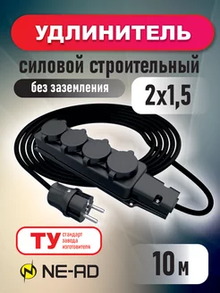 Удлинитель силовой строительный без заземления 2x1,5-10м