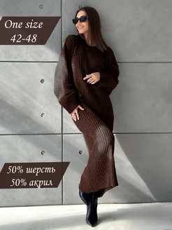 платье теплое трикотажное вязаное длинное