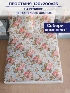Простынь 120х200 резинка Сказка перкаль Прохоровская розанов