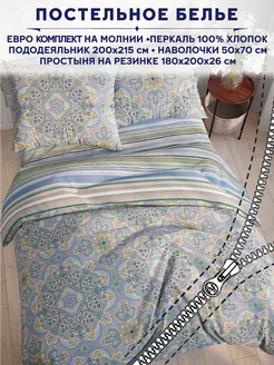 Постельное белье евро на молнии, простыня на резинке 180х200