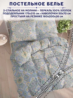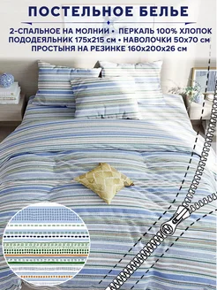 Постельное белье 2 сп на молнии, простыня на резинке 160х200