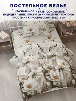 Постельное белье 1.5 сп простынь 150х215 см бязь Iris