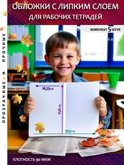 Обложки с липким слоем для рабочих тетрадей 5 шт 21,6х18,5см