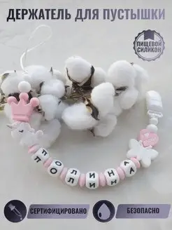 Именной силиконовый держатель для соски пустышки ПОЛИНА