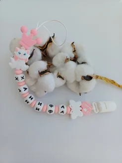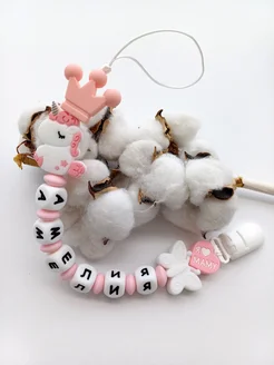 Именной силиконовый держатель для соски пустышки АМЕЛИЯ