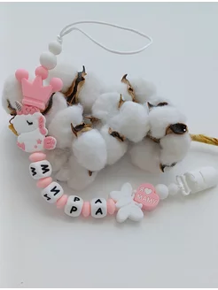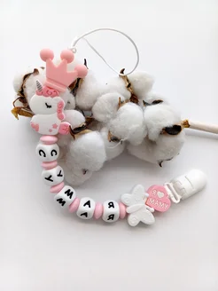 Именной силиконовый держатель для соски пустышки СУМАЯ