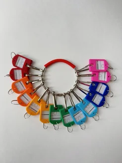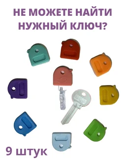 Бирки для ключей силиконовые разноцветные с наклейкой 9шт
