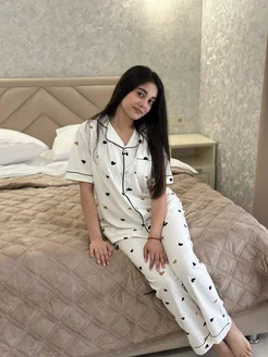 Пижама летняя с брюками и рубашкой трикотажная хлопок