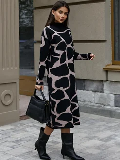платье женское теплое трикотаж миди