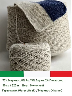 Пряжa для вязания Гарзсофтяк Garzsoftyak Италия 75% Меринос