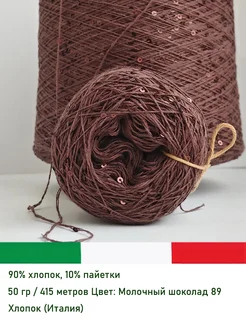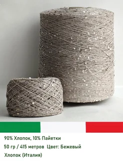 Пряжa с пайетками для вязания RFB 90% Хлопок