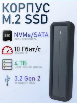 Универсальный корпус для M.2 SSD NVME SATA с защитным чехлом