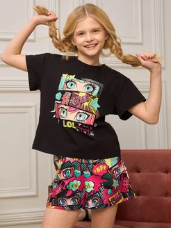 Домашняя пижама с шортами и футболкой подростковая, хлопок
