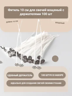 Фитиль 10 см для свечей вощеный с держателями 100 шт