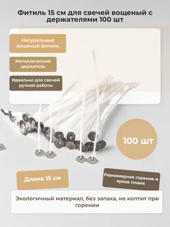 Фитиль 15 см для свечей вощеный с держателями 100 шт