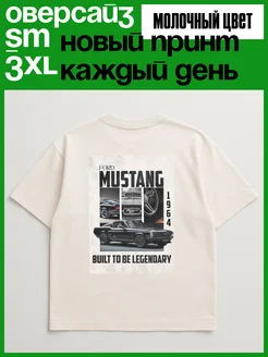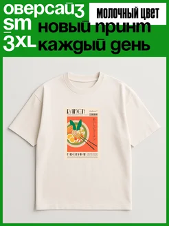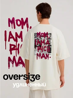 Хлопковая оверсайз футболка молочная с принтом "Мак"