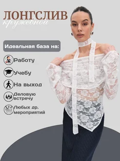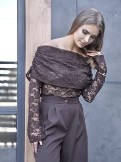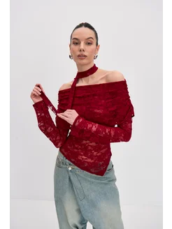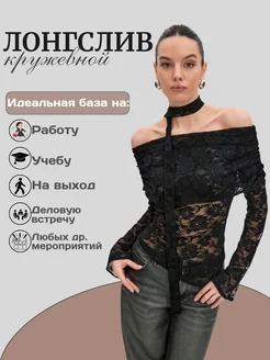 Лонгслив с открытыми плечами кружевной нарядный