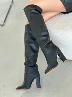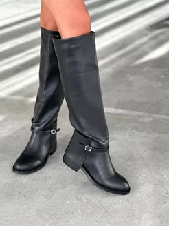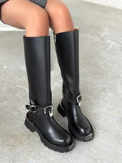 Сапоги трубы демисезонные на толстой подошве с ремешками
