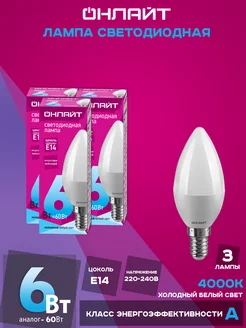 Лампочка светодиодная энергосберегающая Свеча E14 6 вт