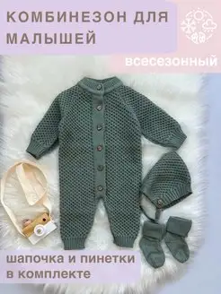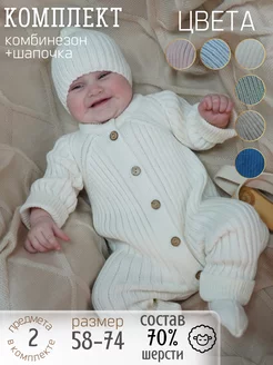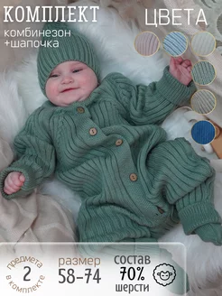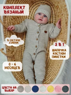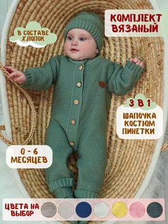 Вязаный комплект комбинезон для новорожденных малышей