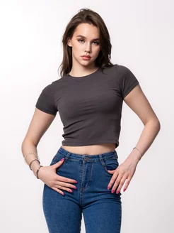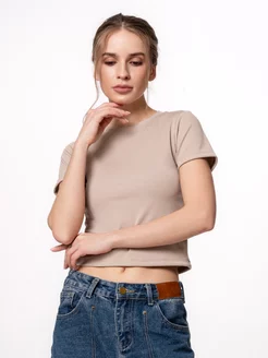 Футболка в рубчик женская,укороченная,кроп топ лапша